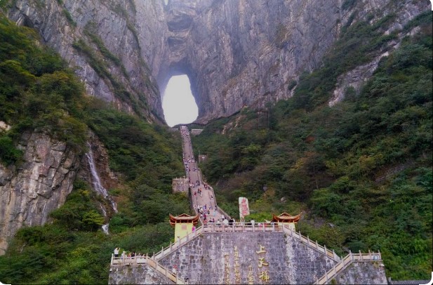 Гора Тяньмэнь в Чжанцзяцзе, известна своей пещерой Тяньмэнь – «Небесные врата», которая является самой высокой естественной аркой в мире. Буддийский храм Тяньмэнь (или «Небесные врата») на горе Тяньмэньшань, который является центром буддизма в провинции Хунань.