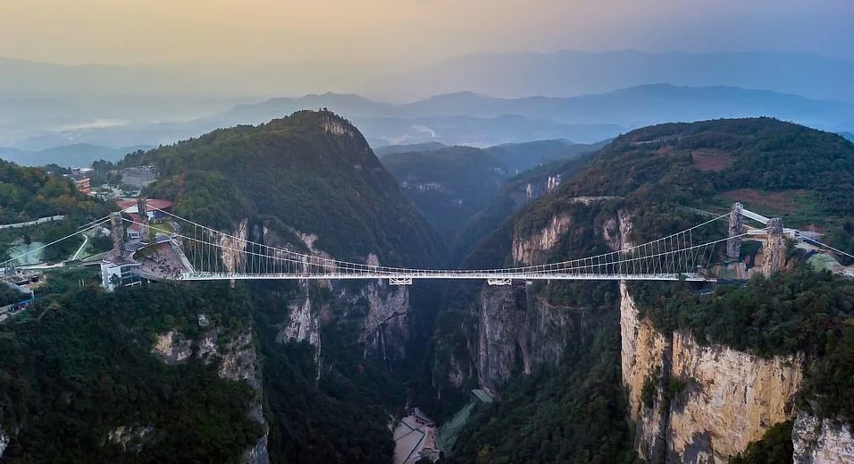 Стеклянный мост Чжанцзяцзе — пешеходный мост, расположенный в Чжанцзяцзе, Китай, над районом Улинъюань. Мост прозрачен и имеет стеклянное дорожное покрытие. Это самый длинный и самый высокий стеклянный мост в мире. Мост был открыт для публики 20 августа 2016 года, имеет длину 430 метров и 6 метров ширину, подвешен на высоте 260 метров над землёй. Мост расположен в каньоне между двумя горными утёсами в Национальном лесном парке Чжанцзяцзе в центральной провинции Хунань в Китае. |