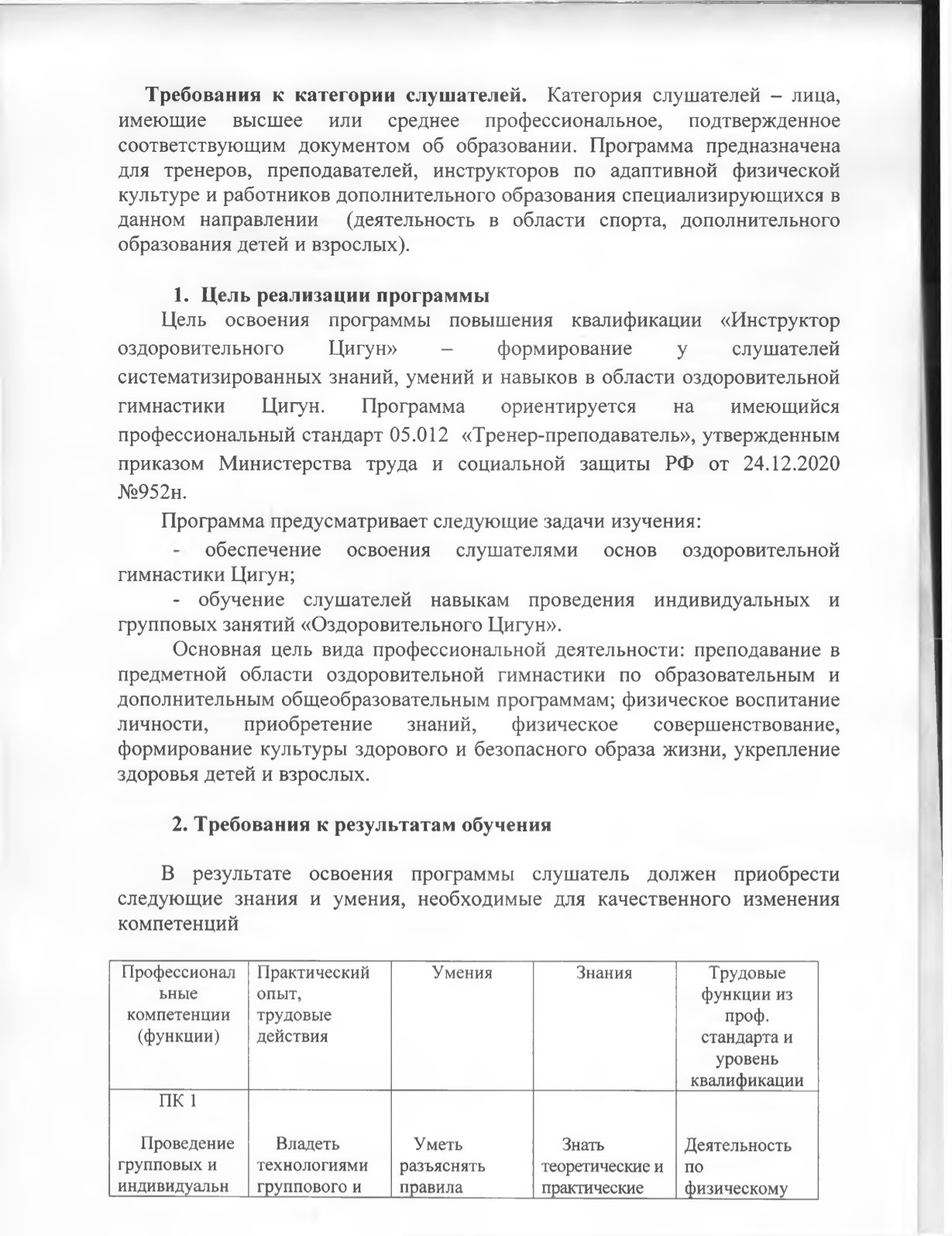 - обеспечение освоения слушателями базовых основ «Оздоровительного Цигун»; - обучение слушателей навыкам проведения индивидуальных и групповых тренировок. |