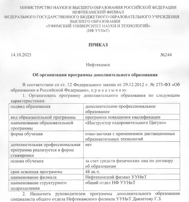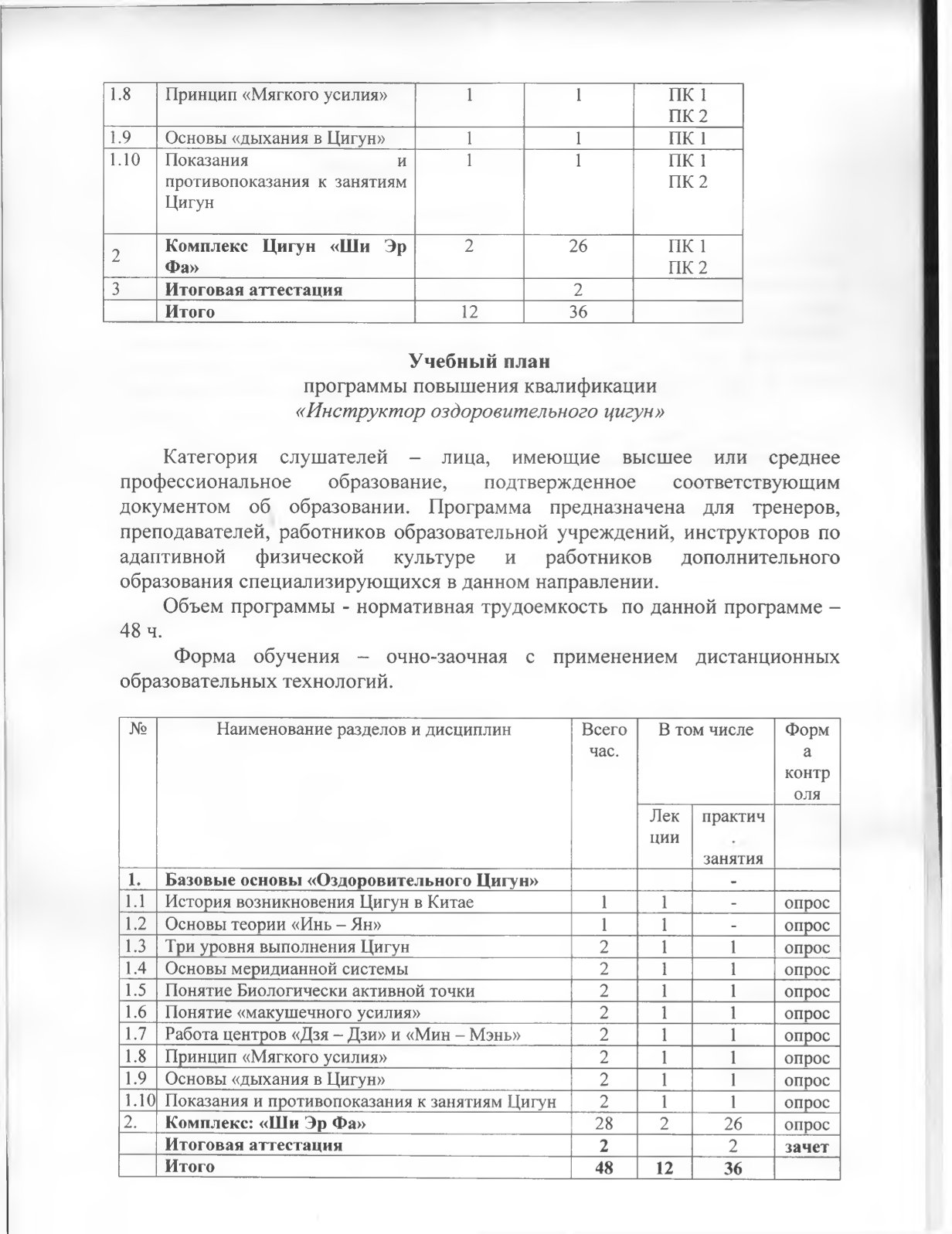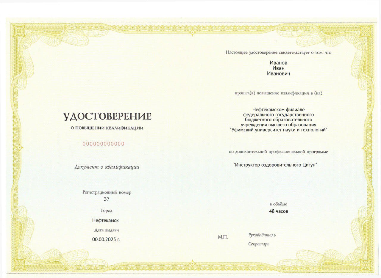 По направлению "Оздоровительному ЦИГУН" можно будет получить официальное государственное удостоверение: "Инструктор Оздоровительного Цигун"