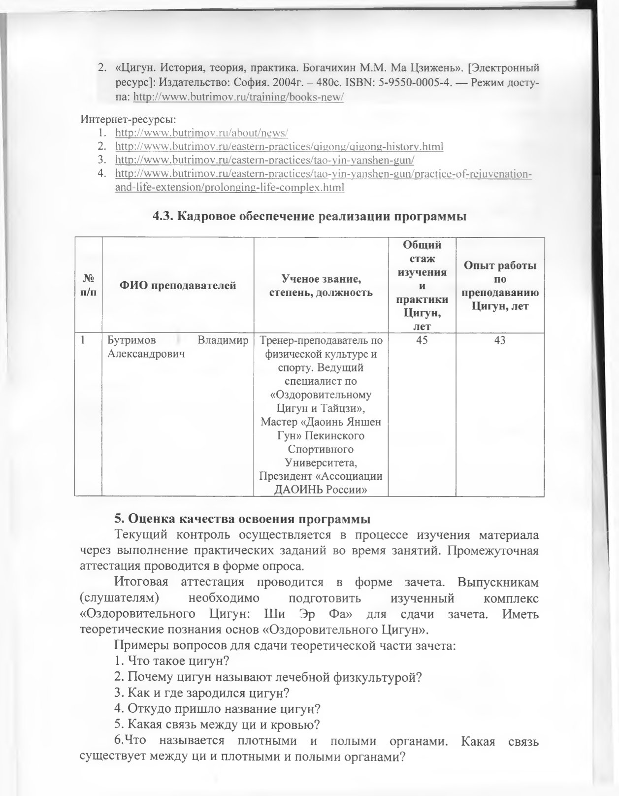 «Инструктор оздоровительного цигун»